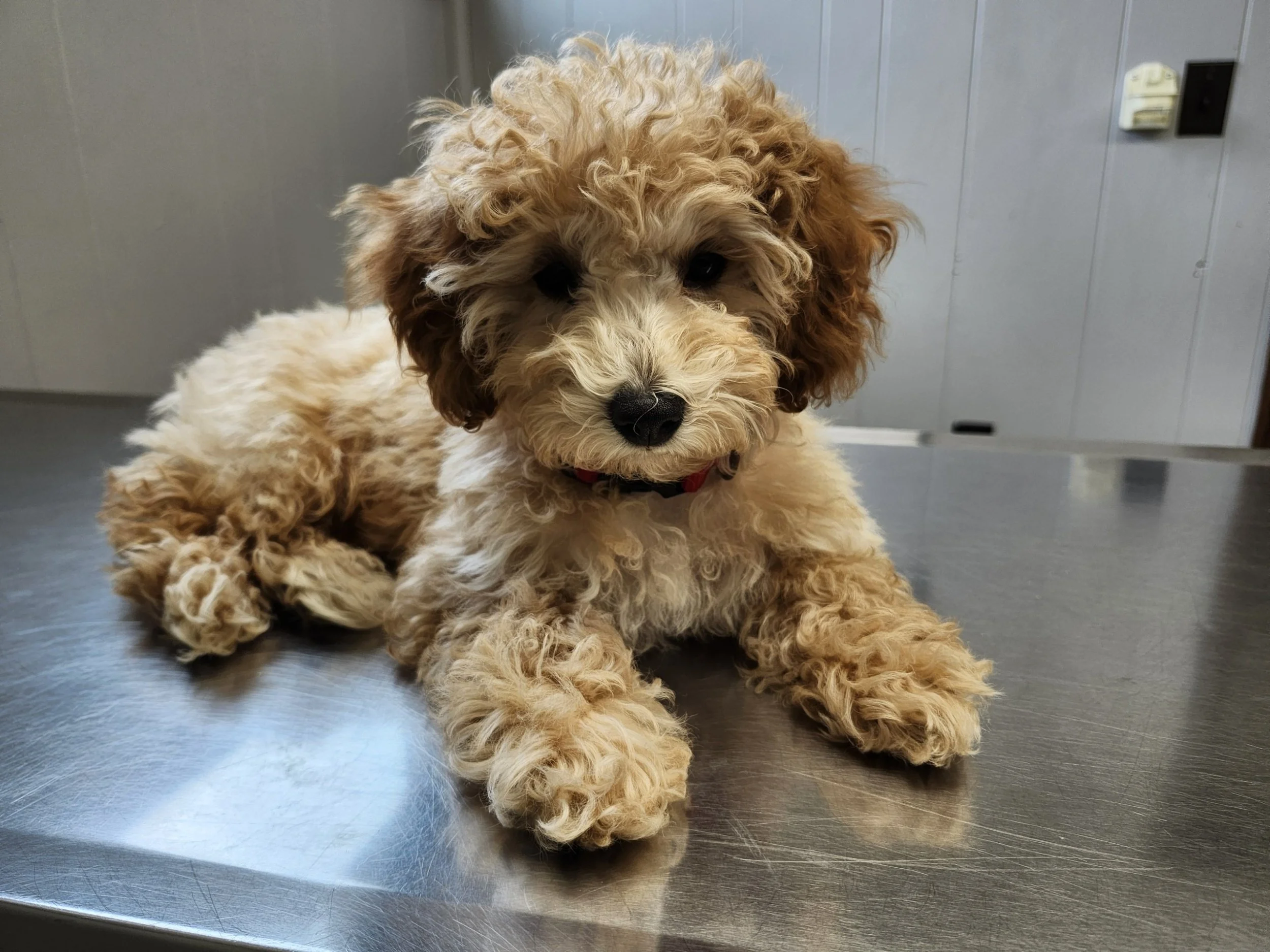 SOLD~Red Collar Boy~ Huck's Adventures Abe~ Abe is Health Tested via Embark and is CLEAR for the following miniature poodle breed-relevant genetics : CDDY/IVDD & CDPA, PRA, DM, vWD1, NEwS, OCD, GM2